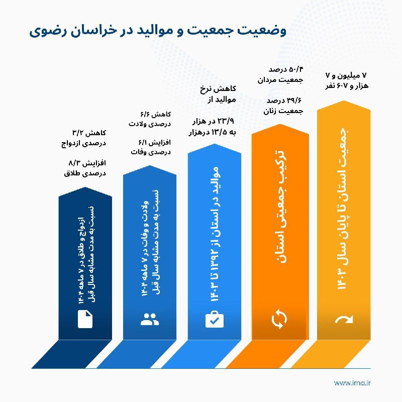 🔹 طبق آمار ثبت احوال خراسان رضوی، بررسی روند جمعیت، ولادت و وفات، ازدواج و طلاق در استان از سال ۱۳۹۲ تا هفت ماهه امسال نشان از کاهش موالید و ازدواج و تغییر در جمعیت خراسان رضوی دارد.