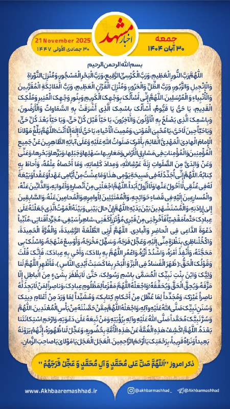 جمعه                          ۳۰   آبــان مــــاه ۱۴۰۴