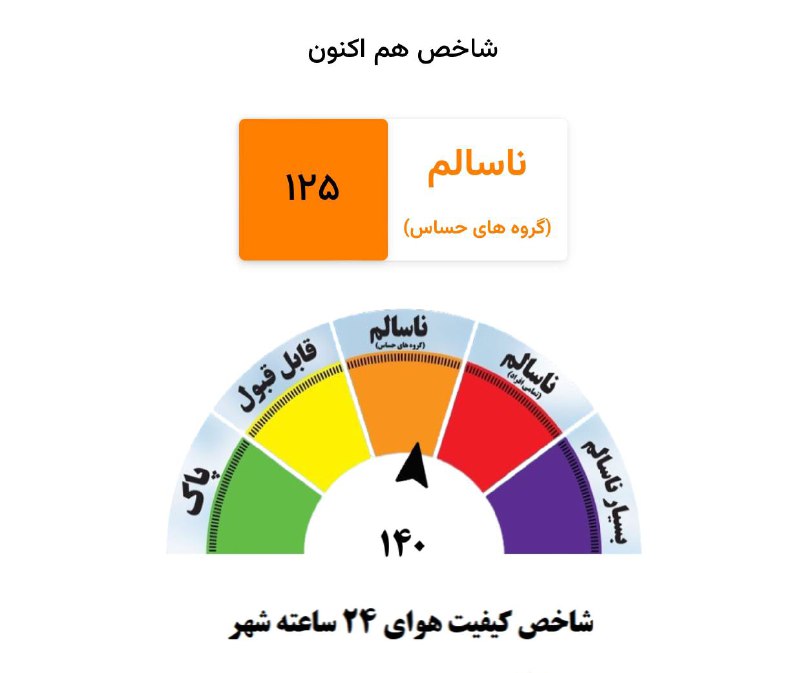🔴کیفیت هوای هم اکنون مشهد با شاخص عددی 125 در وضعیت ناسالم برای افراد حساس قرار دارد.