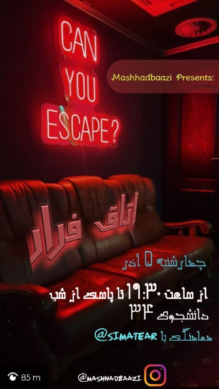 📆 چهارشنبه ۵آذرماه(ایونت ترس اتاق فرار)