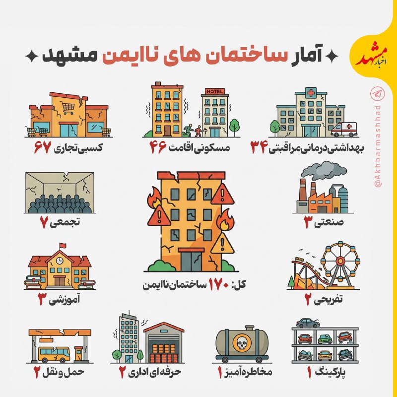🔸چه تعداد ساختمان ناایمن در مشهد وجود دارد؟#اینفوگرافی_اخبارمشهد@AkhbarMashhad Posted on نوامبر 29, 2025 🔸چه تعداد ساختمان ناایمن در مشهد وجود دارد؟#اینفوگرافی_اخبارمشهد@AkhbarMashhad