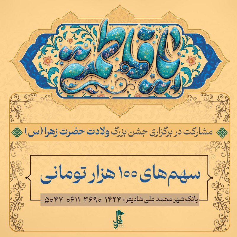 🔹سهم‌های ۱۰۰ هزار تومانی برای برگزاری جشن بزرگ ولادت حضرت فاطمه زهرا (س)