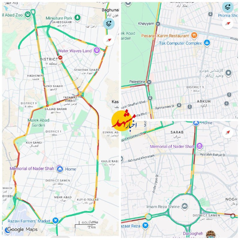 💢 بلوار ملک آباد ، بلوار وکیل آباد ، محدوده حرم مطهر رضوی و … نیز درگیر ترافیک هستند.