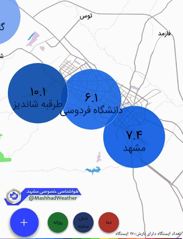 💦 میزان بارندگی امروز کلانشهر مشهد