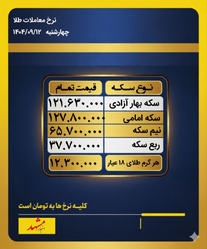 🔸طلا و سکه در اوج #نرخ_طلا@Akhbarmashhad Posted on دسامبر 3, 2025 🔸طلا و سکه در اوج #نرخ_طلا@Akhbarmashhad