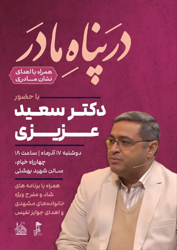 ▪اجتماع بزرگ خانوادههای مشهدی با عنوان “در پناه مادر” به مناسبت میلاد بانوی دو عالم، حضرت فاطمه زهرا (سلاماللهعلیها)