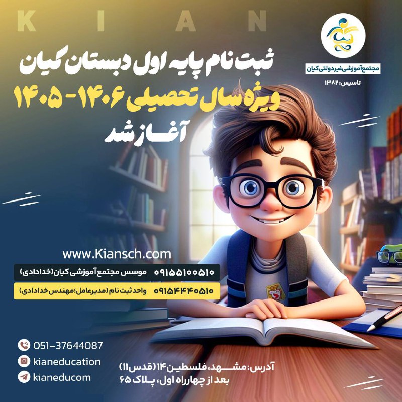 📚پیش ثبت نام اینترنتی #پایه_اول دبستان کیان ویژه سال تحصیلی ۱۴۰۶-۱۴۰۵ آغاز شد: