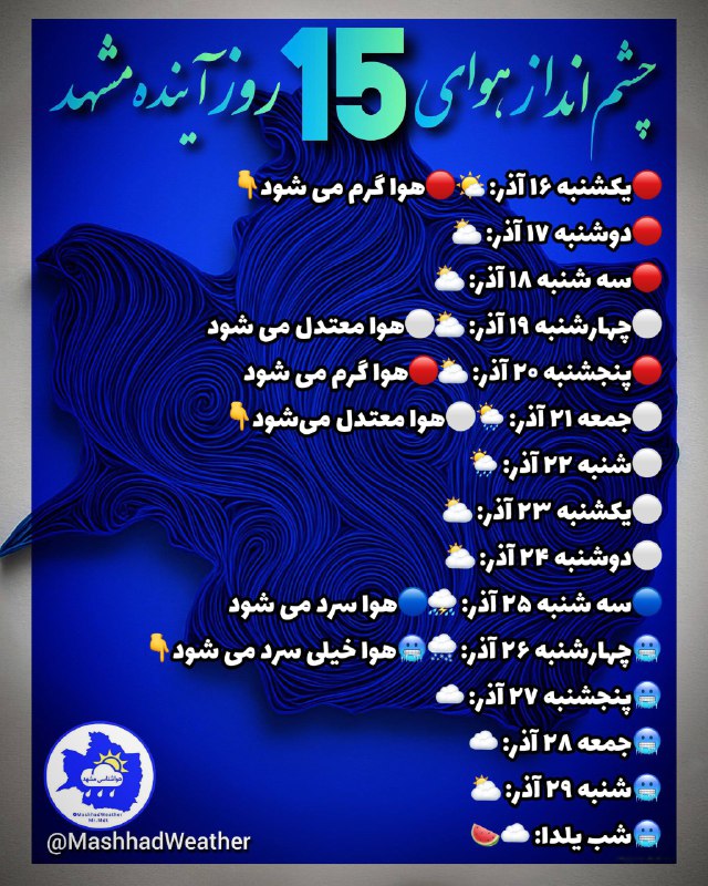 👁️چشم انداز هوای ۱۵ روز آینده مشهد