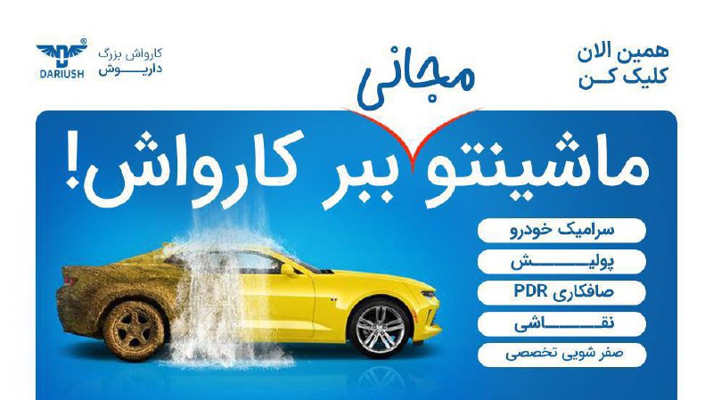 • ماشینتو مجانی بیار کارواشفقط کافیه، عدد ۱ رو به