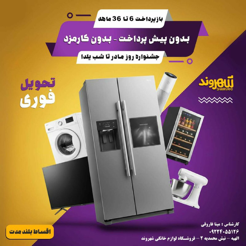 📍آدرس : مشهد ، الهیه نبش محمدیه 2 فروشگاه لوازم خانگی شهروند