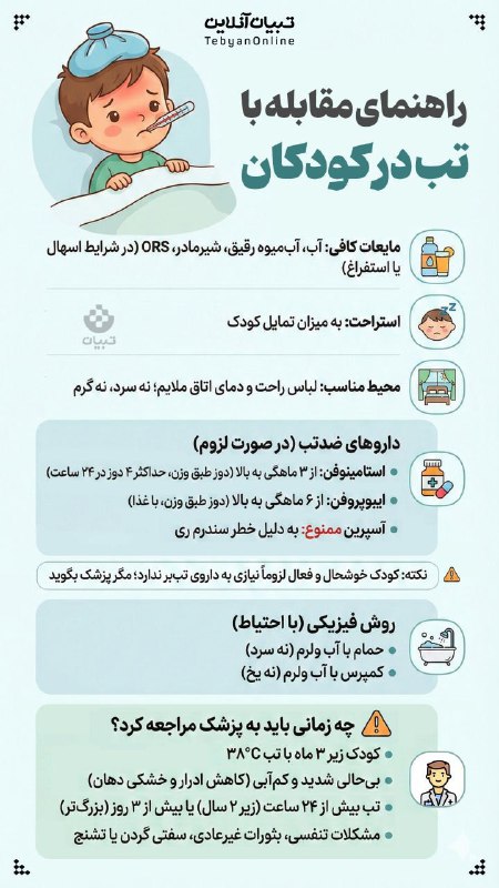 📷راهنمای مقابله با تب در کودکان@Akhbarmashhad