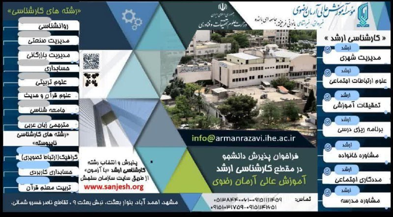 ✍پذیرش دانشجوی کارشناسی ارشد باآزمون، موسسه آموزش عالی آرمان