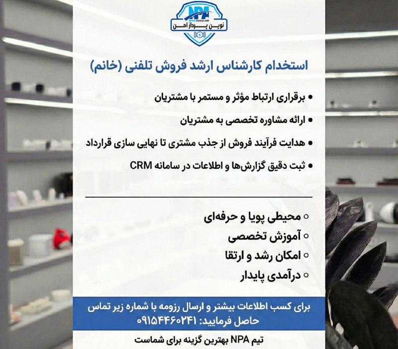 شرکت «نوین پرداز امن (NPA)» تولید کننده سیستمهای امنیتی، جهت تکمیل کادر فروش خود به صورت حضوری دعوت به همکاری میکند.