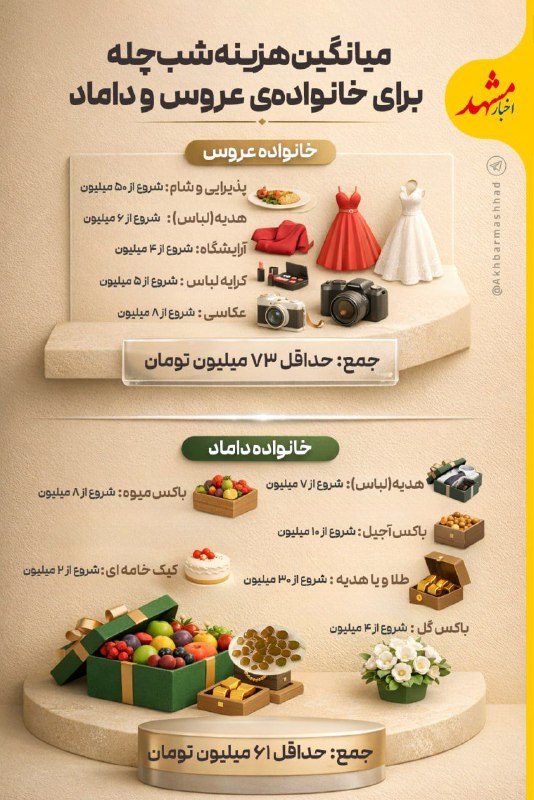 🔸میانگین هزینه شبچله برای خانوادهی عروس و داماد چقدر میشود؟