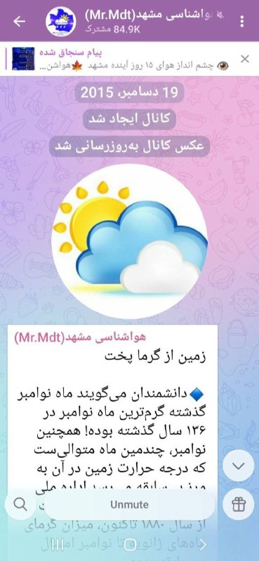 ✍️ اولین پست کانال هواشناسی خصوصی مشهد ۲۸ آذر ۱۳۹۴