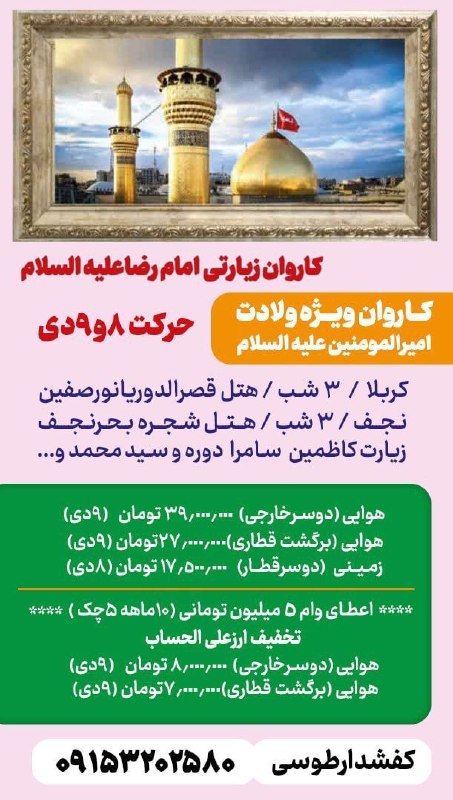 ⬇️ کاروان ویژه ولادت امیرالمومنین (ع)کربلا ۳ شبنجف ۳