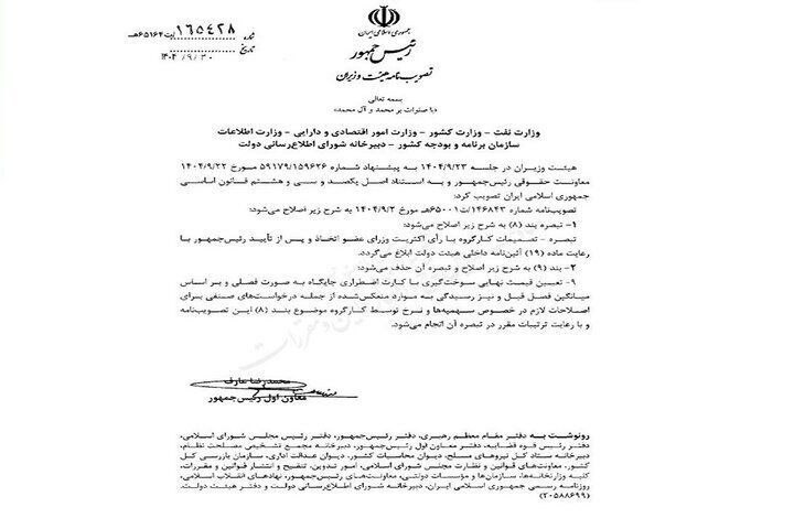 🔹نرخهای جدید نیز به وسیله کارگروه و طبق ترتیبات تبصرهها نهایی خواهد شد.