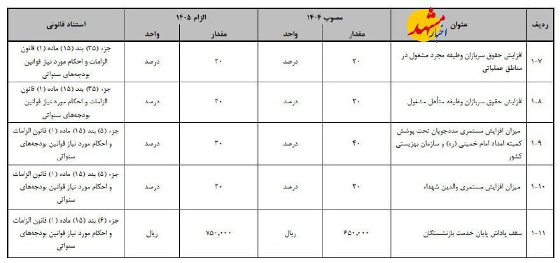 🔸حقوق سربازان و مستمری مددجویان ۲۰ درصد در سال Posted on دسامبر 23, 2025 🔸حقوق سربازان و مستمری مددجویان ۲۰ درصد در سال ۱۴۰۵ اضافه خواهد شد@Akhbarmashhad