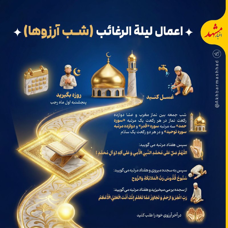 📷اعمال روز و شب لیله الرغائب(شب آرزوها)#اینفوگرافی_اخبارمشهد@Akhbarmashhad Posted on دسامبر 25, 2025 📷اعمال روز و شب لیله الرغائب(شب آرزوها)#اینفوگرافی_اخبارمشهد@Akhbarmashhad