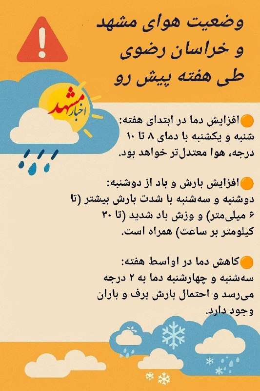 • 💢💢برف و باران به مشهد برمی‌گردد/ اواسط هفته آینده