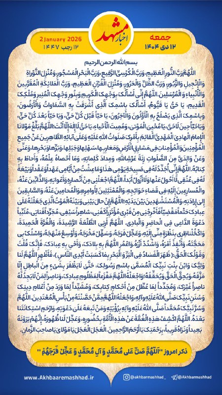 جمعه                  ۱۲ دی مـــاه ۱۴۰۴