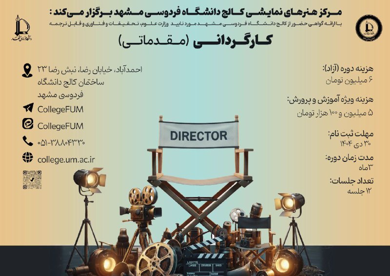 🏢 مکان برگزاری: احمدآباد، خیابان رضا، نبش رضا ۲۳، ساختمان کالج دانشگاه فردوسی مشهد