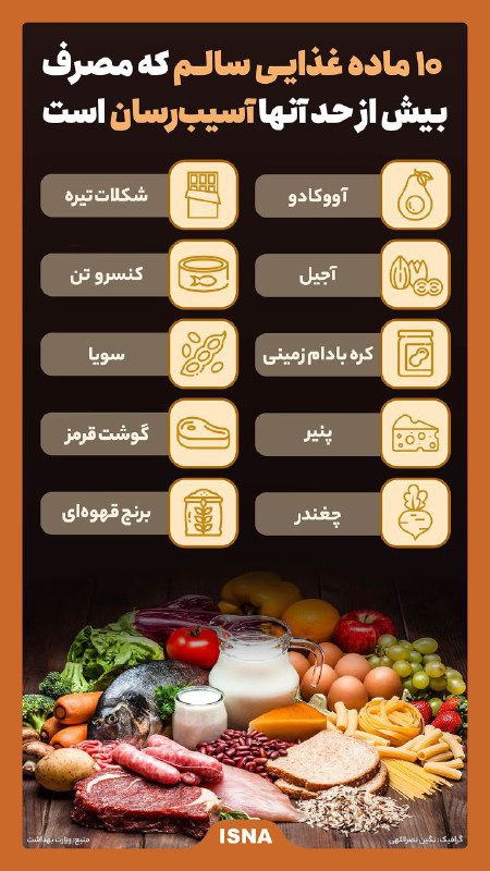 📷۱۰ ماده غذایی سالم که مصرف بیش از حد Posted on ژانویه 5, 2026 📷۱۰ ماده غذایی سالم که مصرف بیش از حد آنها آسیب رسان است@Akhbarmashhad