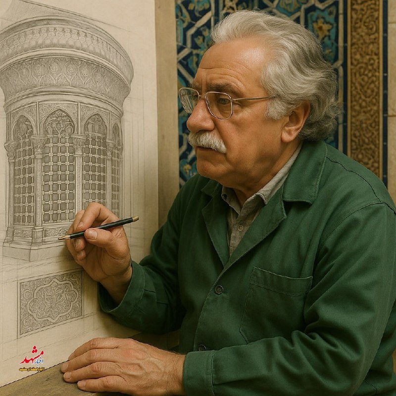🔸 تصویر سازی هوش مصنوعی از چهره مرحوم استاد فرشچیان هنگام طراحی ضریح منور رضوی