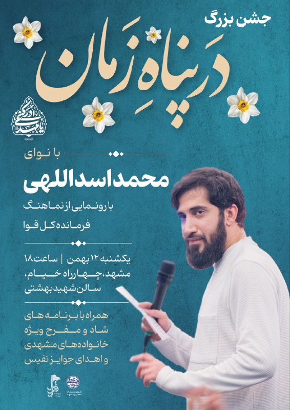 ✨ به مناسب «ولادت باسعادت صاحب زمین و زمان» و «روز جوان» با نوای محمد اسداللهی و با “رونمایی از نماهنگ فرمانده کل قوا” در کنار شما خانوادهها و جوانان مشهدی گرد هم میآییم.