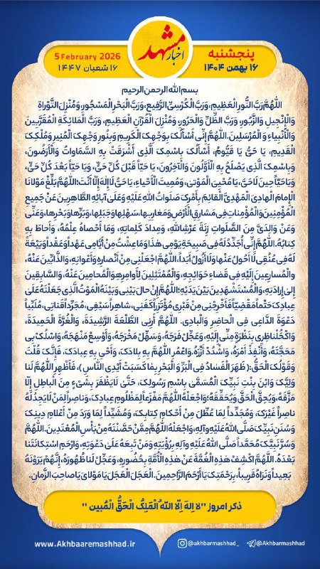 پنجشنبه ۱۶ بهـمن ماه ۱۴۰۴