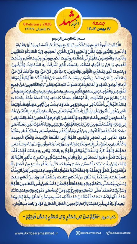 جمعه ۱۷ بهـمن ماه ۱۴۰۴