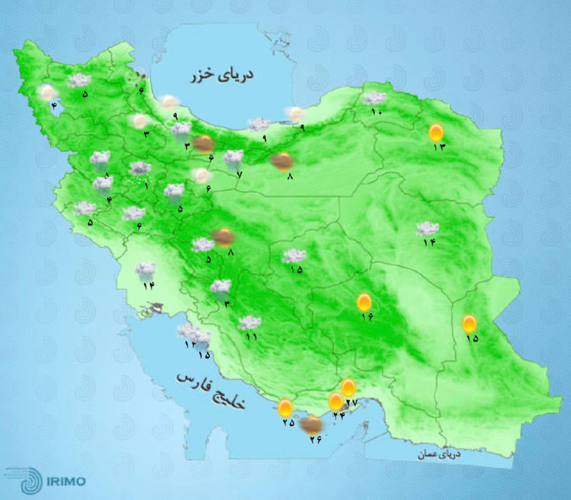 🌡️ دمای هم اکنون مشهد ۱۳+🔴بندرعباس ۲۷+🔵همدان ۱+❄️هواشناسی خصوصی