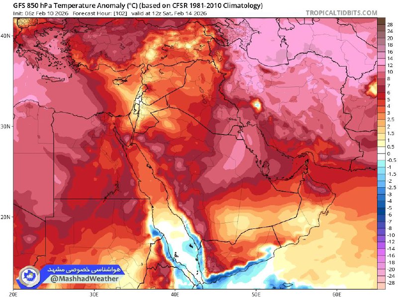 🔹همچنان تا ابتدای هفته آینده افزایش محسوس دما در کشور و بویژه استان خراسان رضوی و مشهد ادامه دارد به طوری که اواخر هفته جاری هوای کاملا گرم و بهاری را تجربه خواهیم کرد و دمای مشهد به بالای ۲۰ درجه سانتیگراد خواهد رسید.