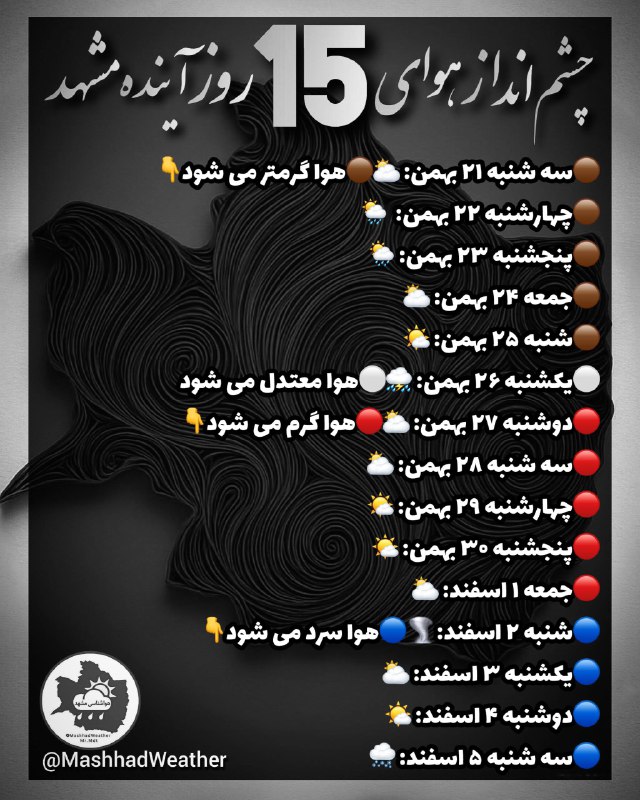 🌱 چشم انداز هوای ۱۵ روز آینده مشهد❄️هواشناسی خصوصی Posted on فوریه 11, 2026 🌱 چشم انداز هوای ۱۵ روز آینده مشهد ❄️هواشناسی خصوصی مشهد👇 @MashhadWeather