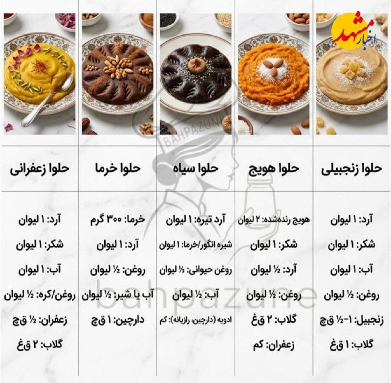 🔸مقدار مواد لازم برای انواع حلوا@Akhbarmashhad Posted on فوریه 12, 2026 🔸مقدار مواد لازم برای انواع حلوا@Akhbarmashhad