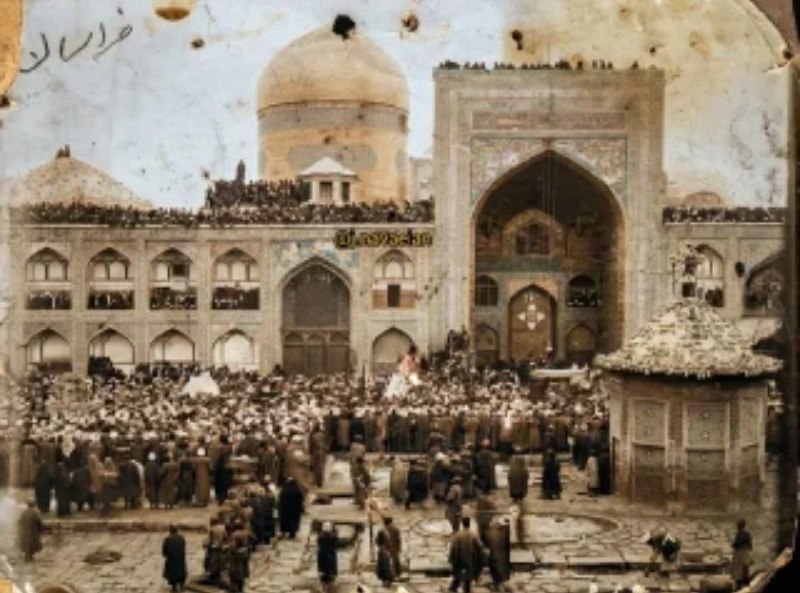 🔹تصویری خاص و بسیار ويژه از صحن عتیق در دوره مظفرالدینشاه که با هوش مصنوعی رنگی و ترمیم شده است.