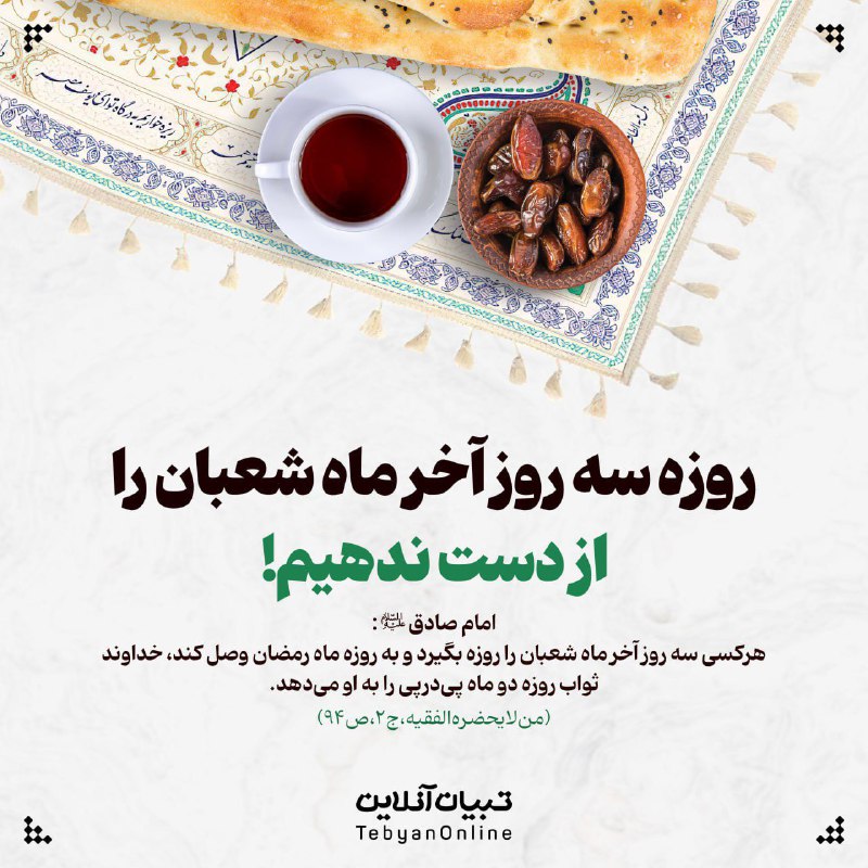 📷روزه سه روز آخر ماه شعبان را از دست Posted on فوریه 15, 2026 📷روزه سه روز آخر ماه شعبان را از دست ندهیم!@Akhbarmashhad