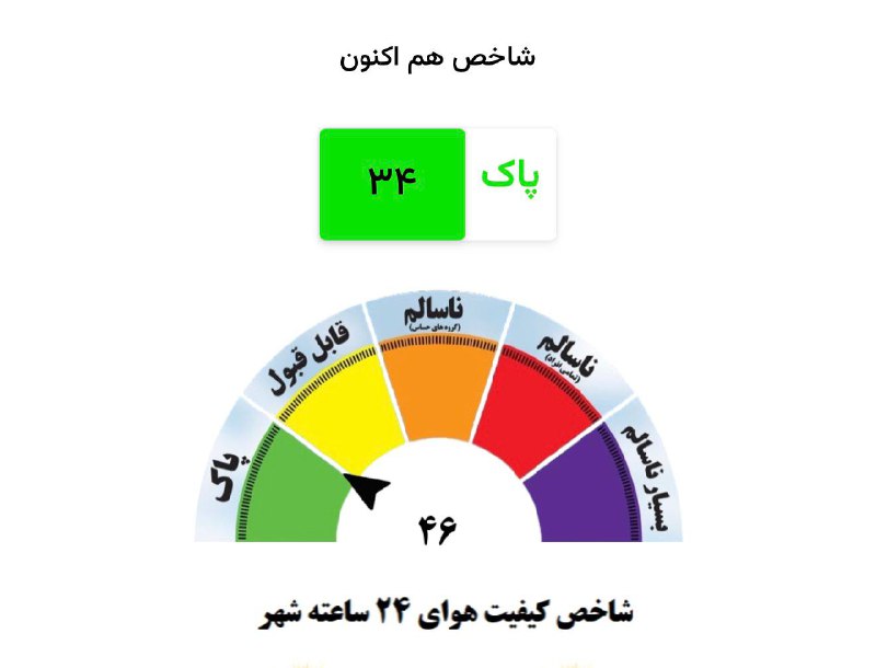 🌱کیفیت هوای هم اکنون مشهد پاک 📊شاخص عددی هم Posted on فوریه 16, 2026 🌱کیفیت هوای هم اکنون مشهد پاک 📊شاخص عددی هم اکنون 34 ❄️هواشناسی خصوصی مشهد👇 @MashhadWeather