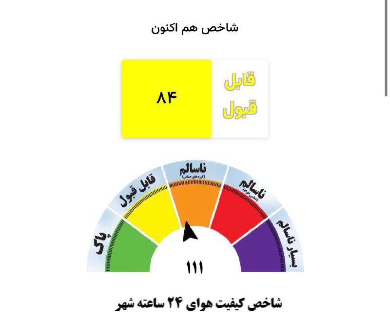 ⚪️کیفیت هوای هم اکنون مشهد قابل قبول 📊شاخص عددی