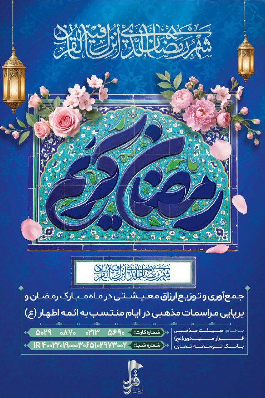 🤲 این روزها در هیئت «قرار» با همراهی شما خیرین گرامی، با جمعآوری و توزیع ارزاق معیشتی، کنار هم جمع میشویم تا سهمی در گرمتر شدن سفرههای نیازمندان و ایتام داشته باشیم و برکت ماه مبارک رمضان را با هم تقسیم کنیم.