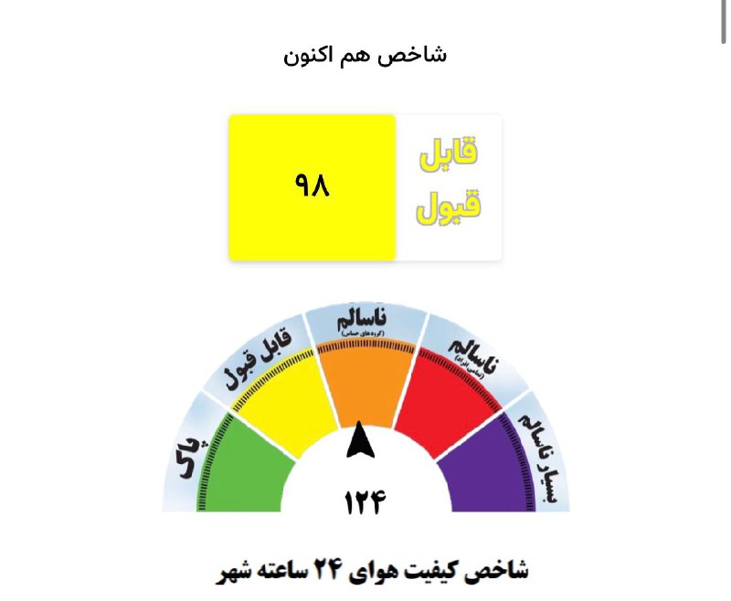 ⚪️کیفیت هوای هم اکنون مشهد قابل قبول 📊شاخص عددی