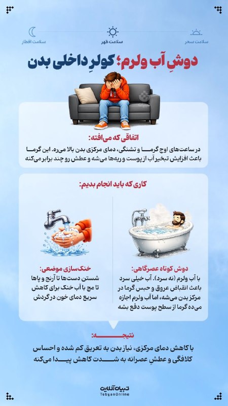 🔸دوشِ آب ولرم؛ کولرِ داخلی بدن