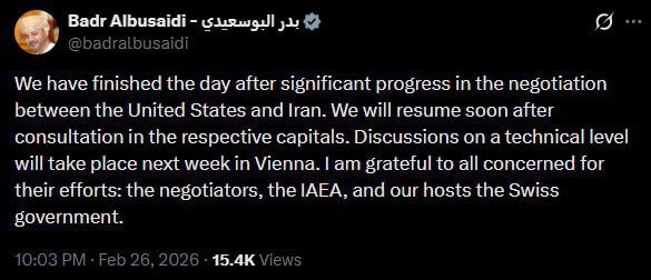 🔹ما یک روز پس از پیشرفت قابل توجه در مذاکرات بین ایالات متحده و ایران، مذاکرات