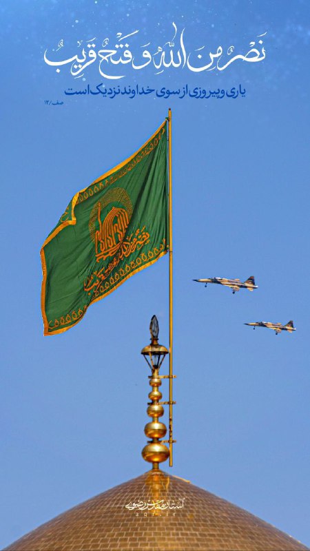 تصویر زیبا از عبور جنگندههای ارتش ایران بر فراز گنبد حرم مطهر رضوی – یک ایران در پناه امام هشتم Posted on فوریه 28, 2026 📷یک ایران در پناه امام هشتم 🔹تصویر زیبا از عبور جنگندههای ارتش ایران اسلامی بر فراز گنبد حرم مطهر رضوی