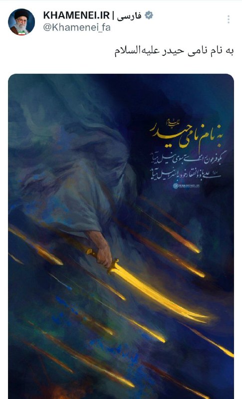 توییت دفتر رهبر انقلاب به نام مقدس حیدر علیهالسلام | پیام ویژه رهبر انقلاب Posted on فوریه 28, 2026 🔸توییت دفتر رهبر انقلاب: به نام نامی حیدر علیهالسلام