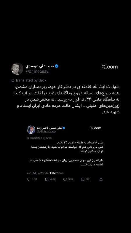 🔹شهادت آیتالله خامنهای در دفتر کار خود، زیر بمباران دشمن، همه دروغهای