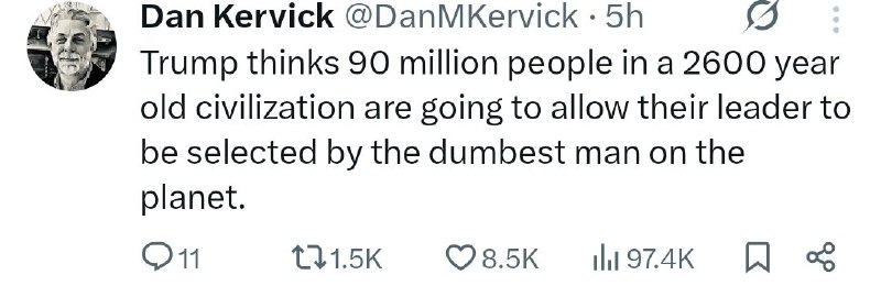 رازهای تمدن ۲۶۰۰ ساله ایران و واکنش ترامپ به انتخاب رهبران مردم ۹۰ میلیون نفری Posted on مارس 7, 2026 🔹ترامپ فکر میکند ۹۰ میلیون نفر در یک تمدن ۲۶۰۰ ساله اجازه میدهند رهبرشان توسط احمقترین مرد روی کره زمین انتخاب شود.