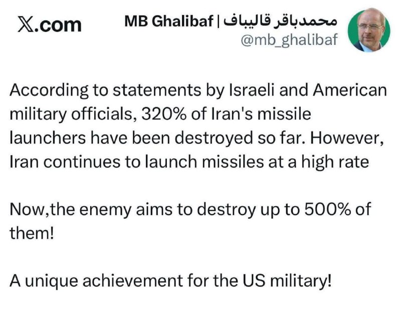 🔹بر اساس ادعاهای آنها تا الان ۳۲۰ درصد توان موشکی ایران نابود شده ولی شلیک