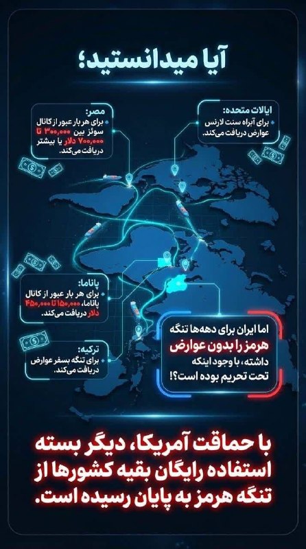 پایان استفاده رایگان کشورهای دیگر از تنگه هرمز بر اثر تصمیمات نادرست آمریکا Posted on مارس 22, 2026 🔸 با حماقت آمریکا، دیگر بسته استفاده رایگان بقیه کشورها از تنگه هرمز به پایان رسیده است