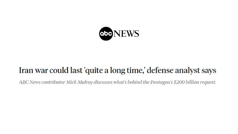 🔸 شبکه ABC آمریکا: جنگ ایران ممکن است «برای مدت طولانی» ادامه یابد